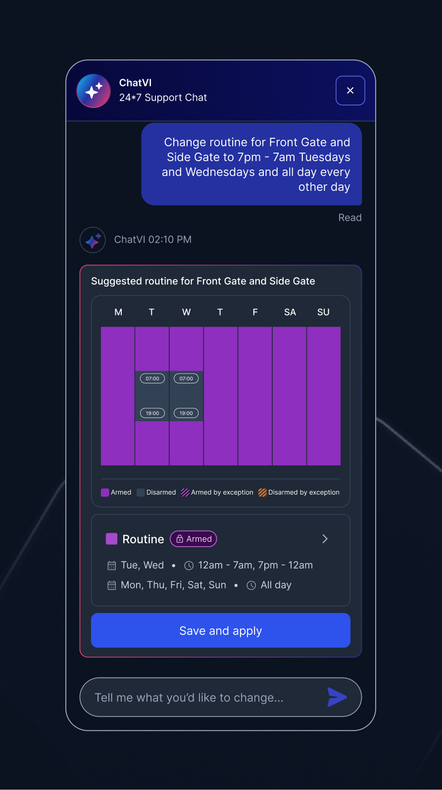 MVP features were defined around scheduling, alarm control, and activity timelines. design and execution ensuring the system could grow in complexity while remaining intuitive.