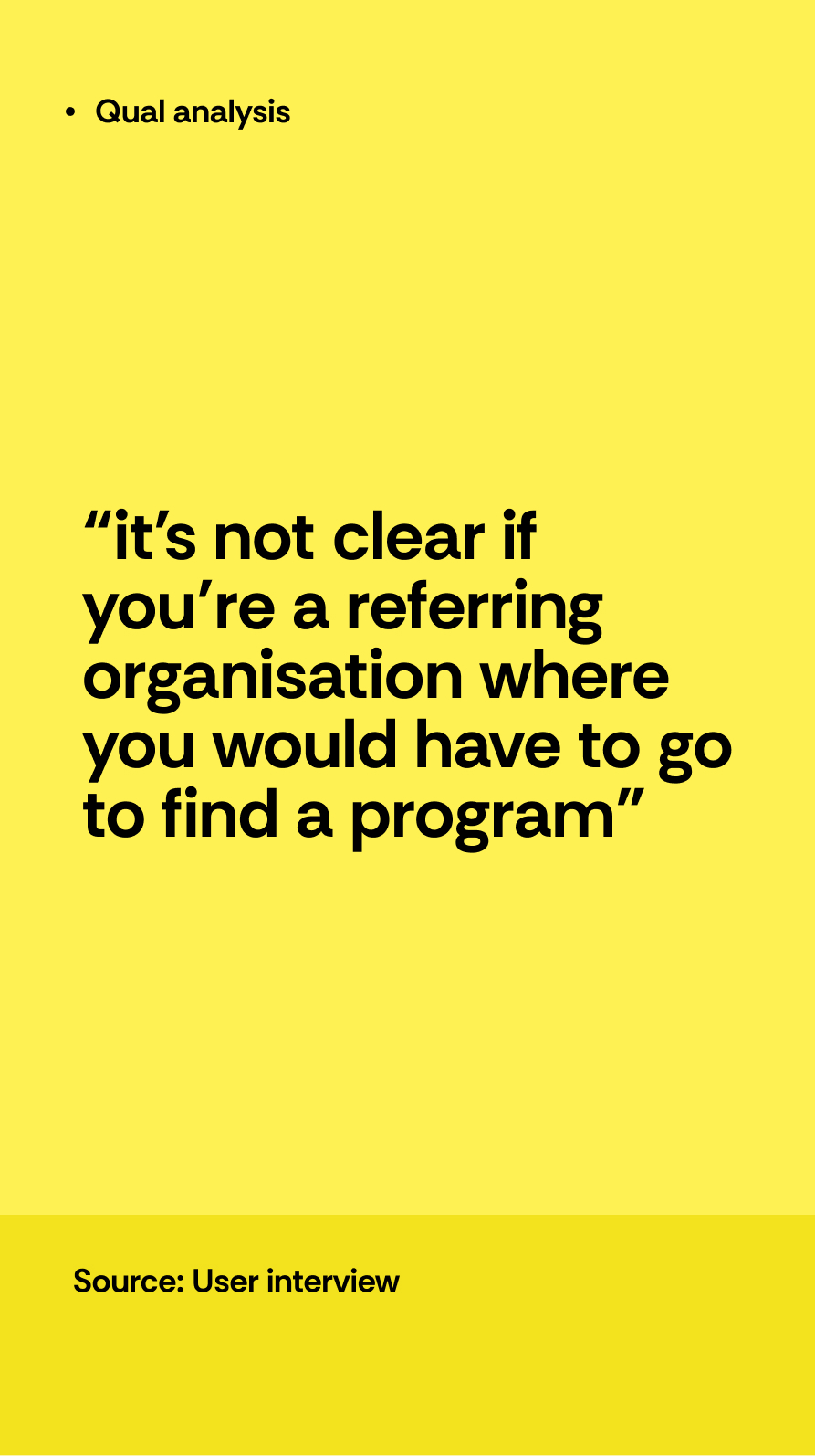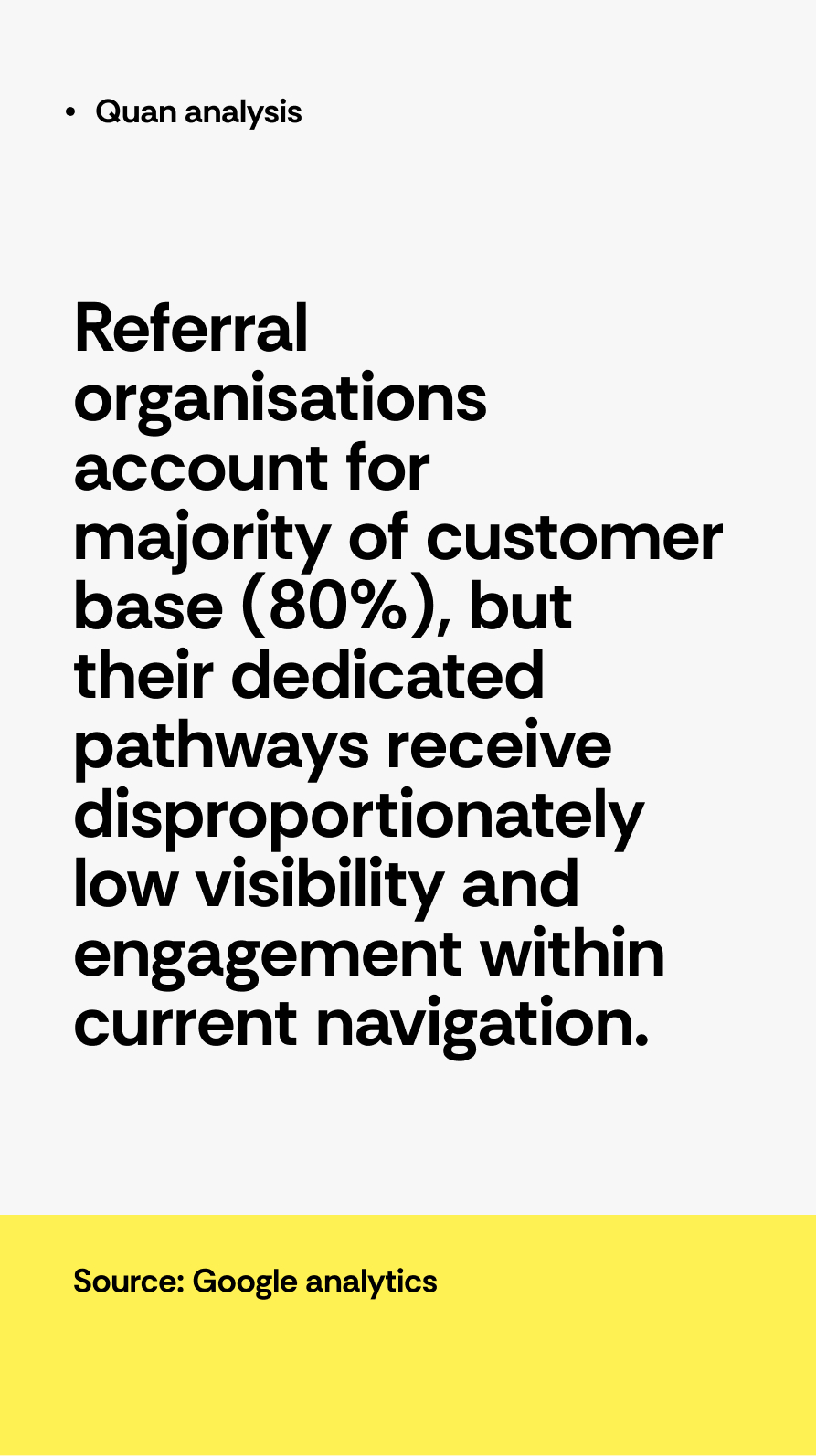 a research-led approach combining qualitative and quantitative insights to rethink the information architecture. stakeholder interviews surfaced key business challenges and gaps in how services were being communicated, while Google Analytics highlighted mismatches between user behaviour and navigation structure. this was validated through card sorting and tree testing with real users to refine labels and pathways.