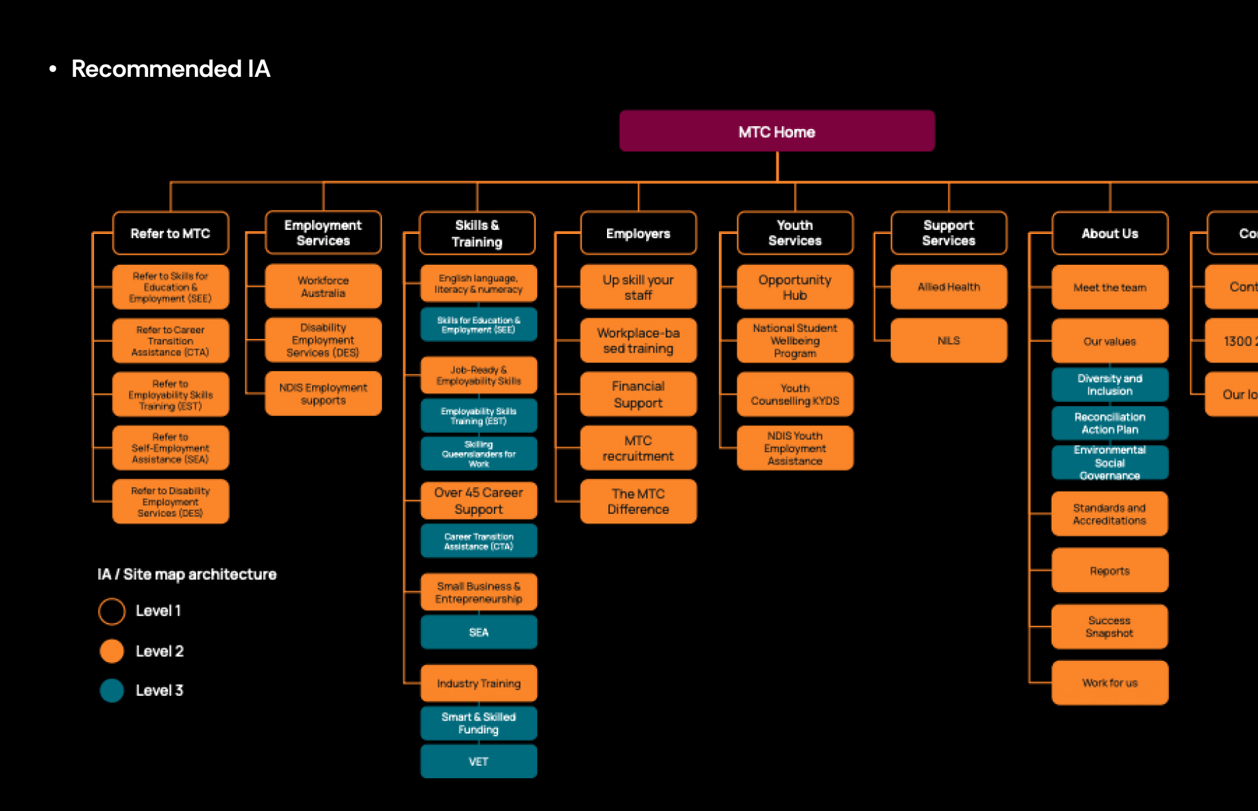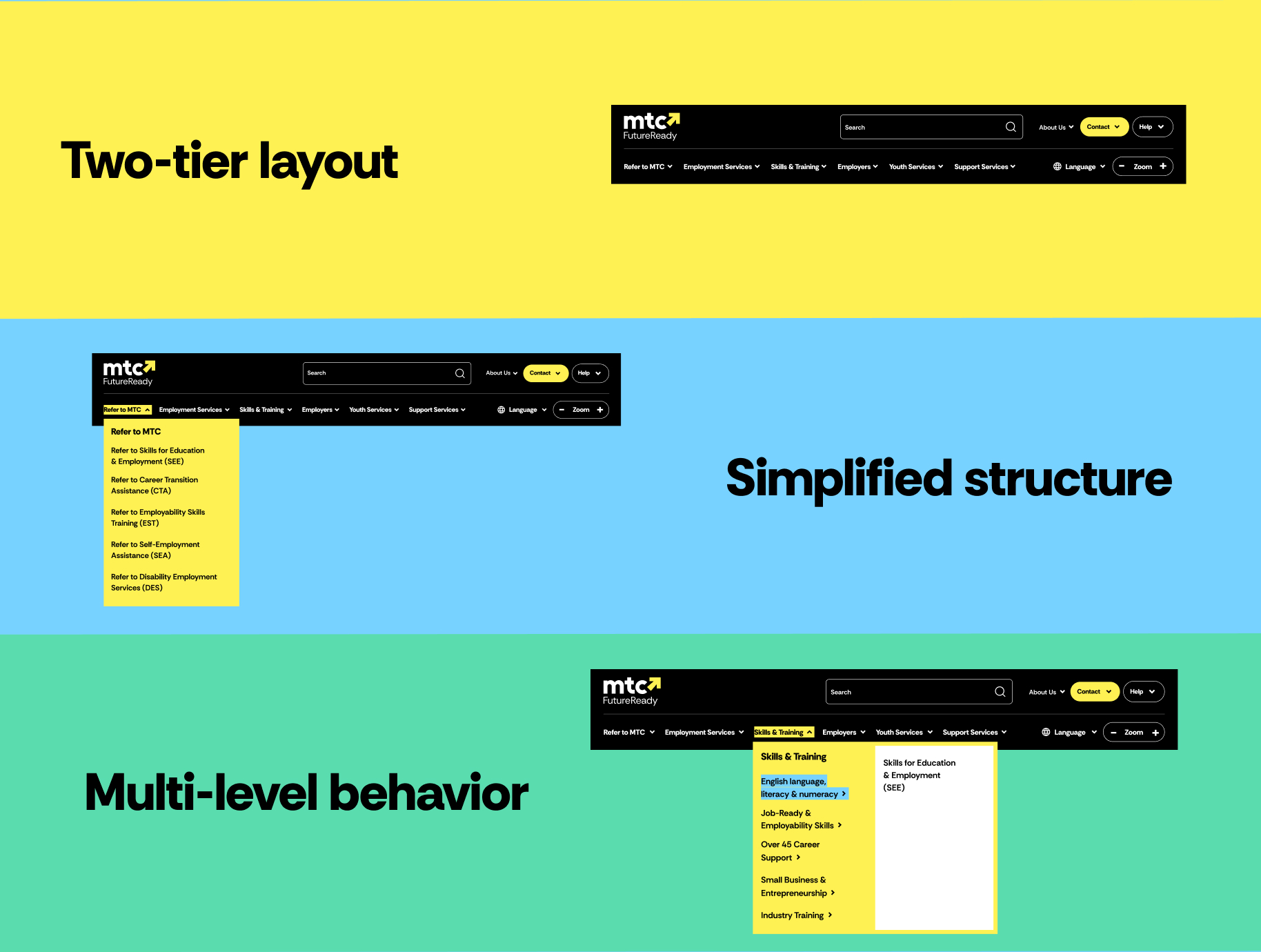these insights informed a simplified, two-tier navigation and multi-level structure for improved clarity, and to surface high-value pathways.