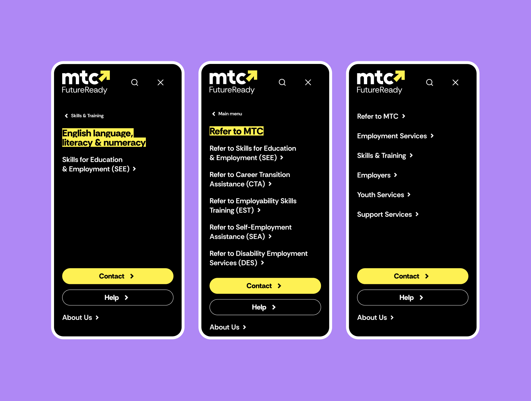 MTC had undergone a brand transformation, but its digital experience hadn't caught up. navigation was unclear, content was difficult to find, and inconsistencies across the legacy component library created confusion for both users and internal teams. without an internal UX function, there was a need to establish a clearer structure, reduce friction, and create a system that could be easily managed and scaled.